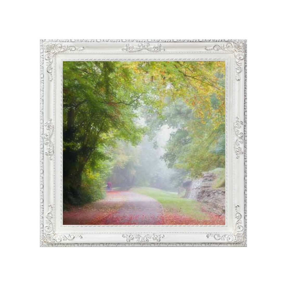Cuadro con paisaje, lámina tratada, reproducción de la obra de de Keri Bevan ricamente enmarcada con nuesto marco de estilo Isabelino en blanco decapé.
