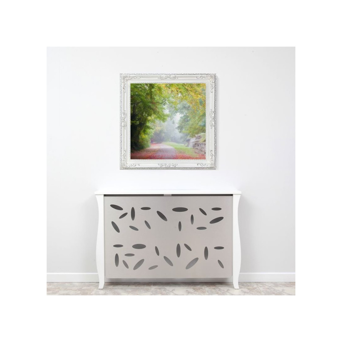 Cuadro paisaje, lámina tratada con barnices de relieve y marco hecho con madera estilo Isabelino. Blanco decapé.
