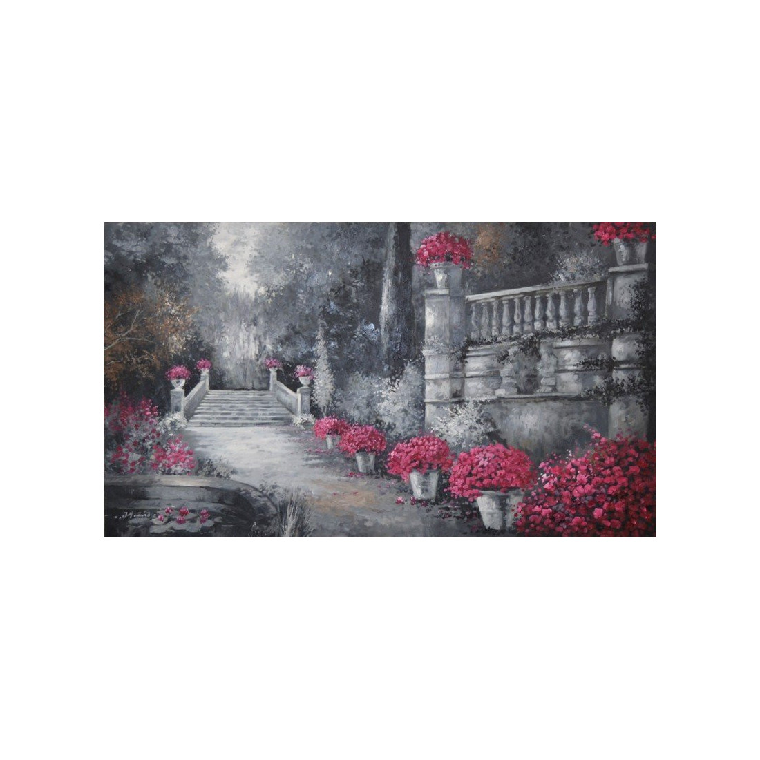 Pintado a mano con óleo y acrílicos.