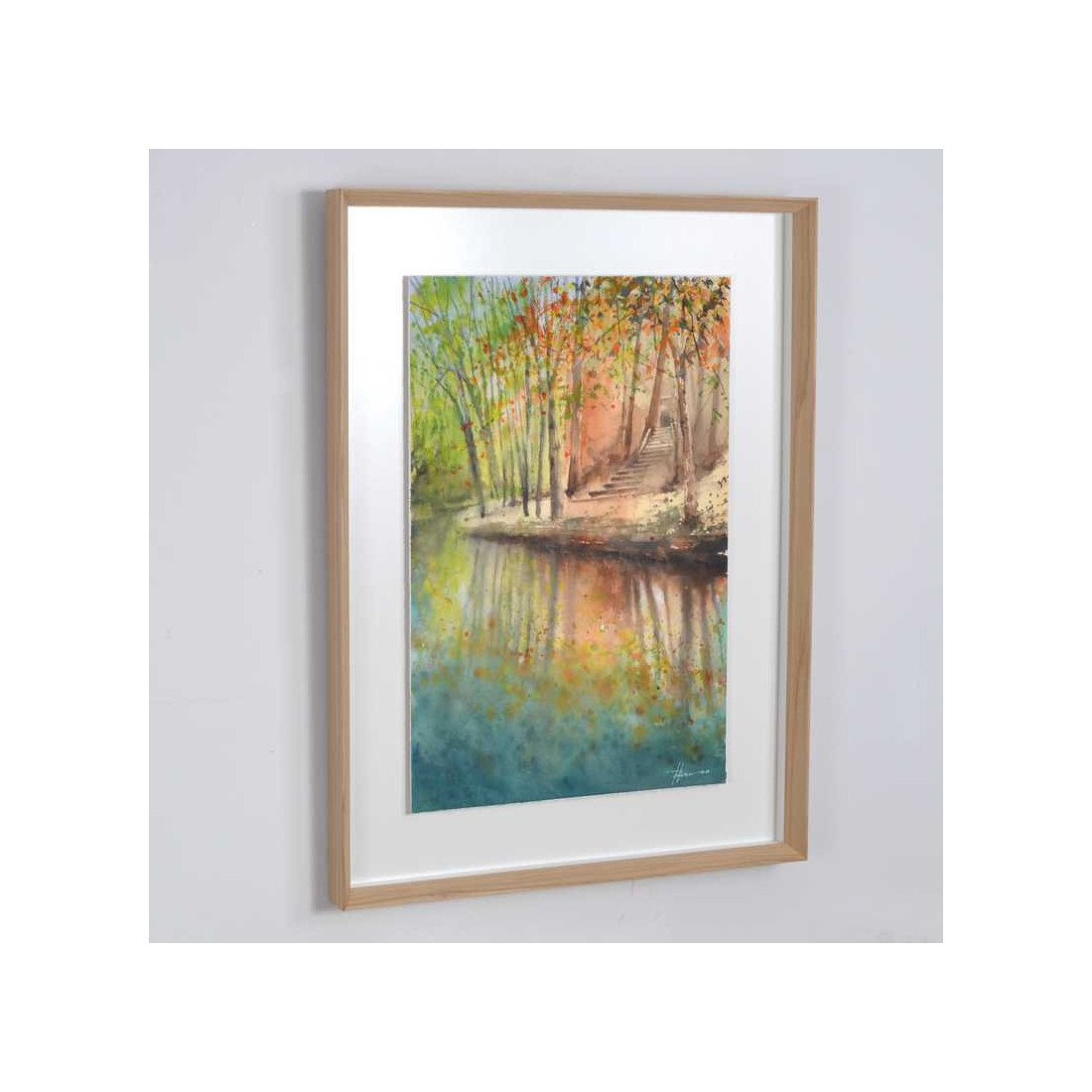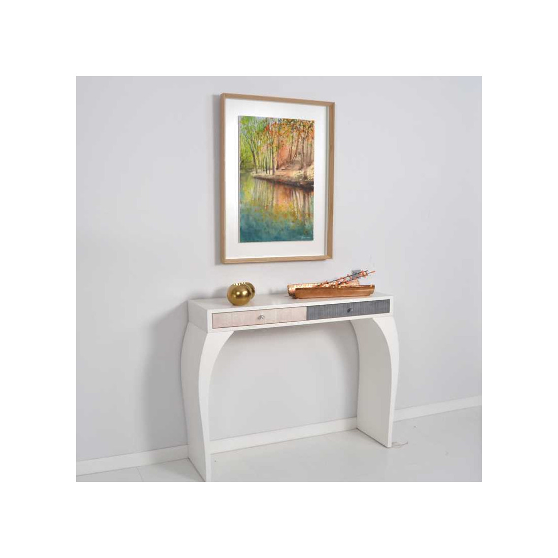 Cuadro con marina, lámina tratada con barnices y marco estilo Isabelino blanco decapé.